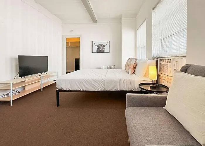Este apartamento de 37 m² se encuentra en el barrio Streeterville, cerca de la estación de metro Clark/Division, a tan solo 450 metros. Los huéspedes pueden llegar fácilmente a 900 North Michigan, situado a tan solo 6 minutos a pie. La Catedral del Santo Nombre está situado a tan solo 1 km de este apartamento.